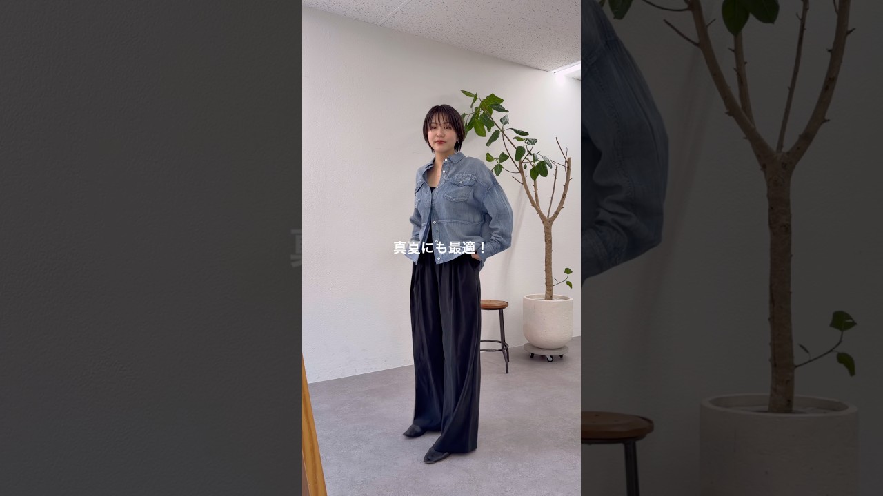 【SHENERY】大人気のシアーデニムシャツ!グレーかと思ってたけど、やっぱりサックスブルーもいいよね🩵レースアイテムもチラ見せなら取り入れやすいから、シンプルコーデ好きさんにもおすすめコーデだよ!