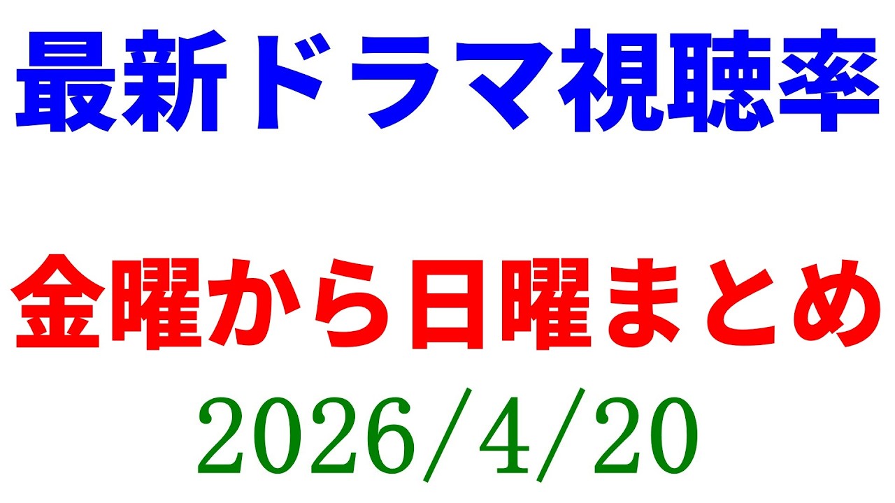 金曜~日曜の全視聴率!視聴率速報☆2026年4月20日 ### ☆Amazon欲しいものリスト https://www.amazon.jp/hz/wishlist/ls/3MTQPTNTTWFUH?ref_=wl_share <ツイッター> https://twitter.com/KkReview このチャンネルのメンバーになって特典にアクセスしてください: https://www.youtube.com/channel/UC8I3iWxXV7Zqa5PpAeAlcFA/join dramaTVドラマテレビドラマドラマドラマ視聴率レビュー感想考察視聴率