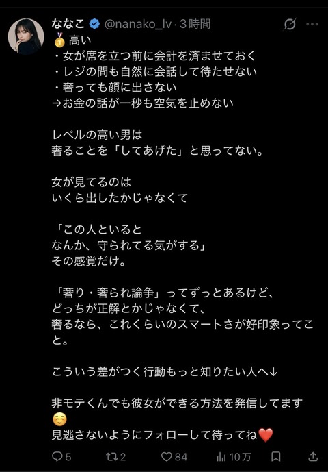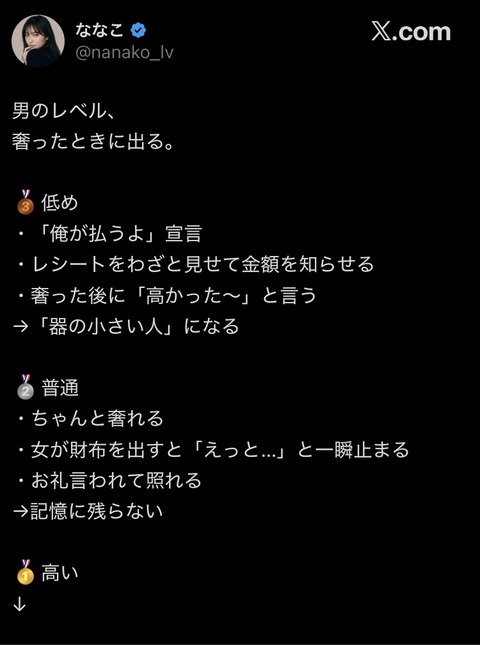 【画像】女子、奢り方の格付けを公開wwwwwwwww