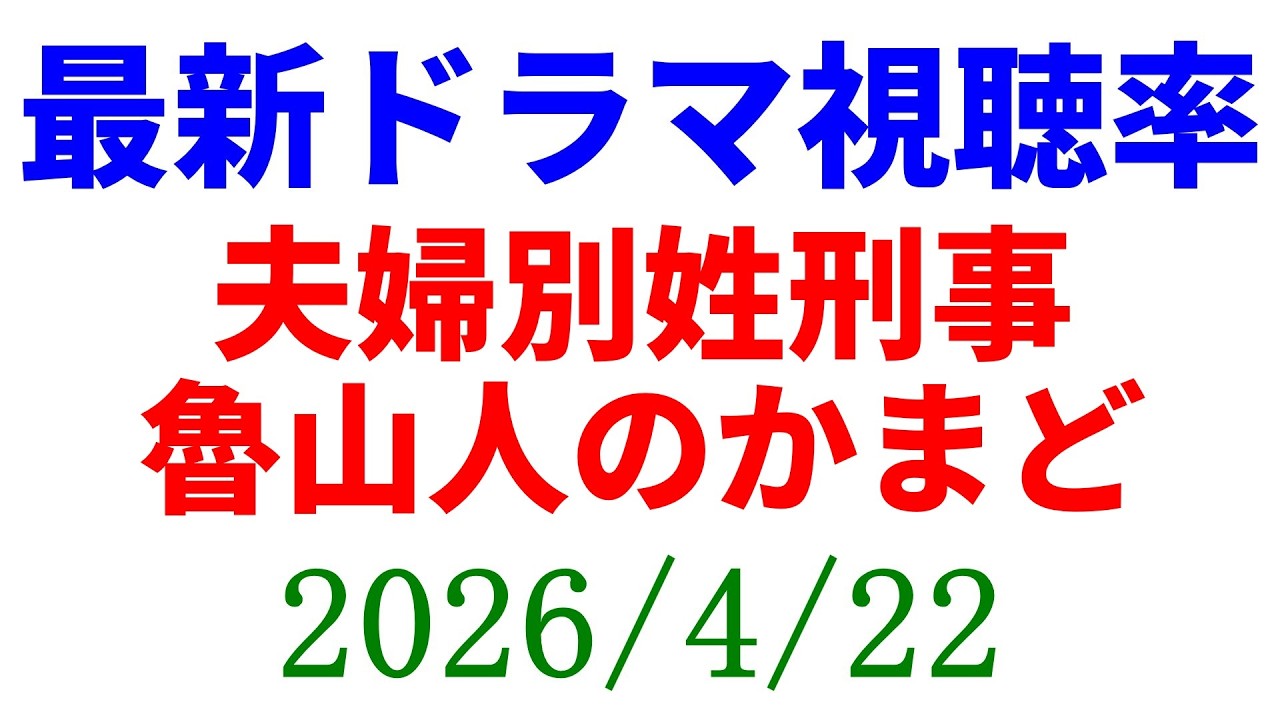 夫婦別姓刑事 視聴率ダウン!視聴率速報☆2026年4月22日 ### ☆Amazon欲しいものリスト https://www.amazon.jp/hz/wishlist/ls/3MTQPTNTTWFUH?ref_=wl_share <ツイッター> https://twitter.com/KkReview このチャンネルのメンバーになって特典にアクセスしてください: https://www.youtube.com/channel/UC8I3iWxXV7Zqa5PpAeAlcFA/join dramaTVドラマテレビドラマドラマドラマ視聴率速報レビュー感想考察視聴率