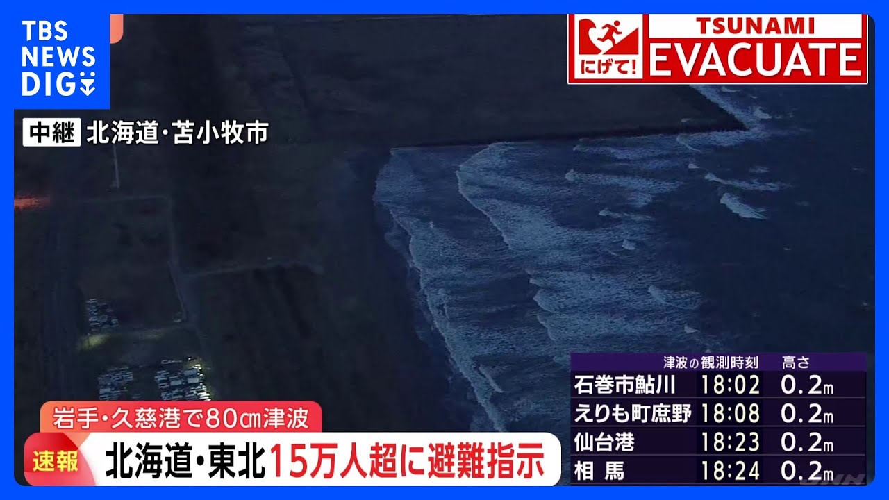 【速報】青森で最大震度5強の地震 北海道・青森・岩手に津波警報 震源は三陸沖・深さ10キロ・推定M7.5 階上町で震度5強、八戸市などで5弱|TBS NEWS DIG