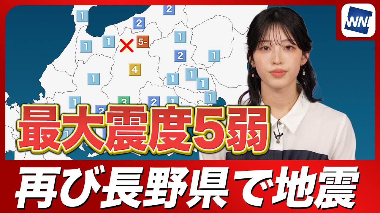 【地震情報】長野県北部で再び地震 M5.1で最大震度5弱 津波の心配なし