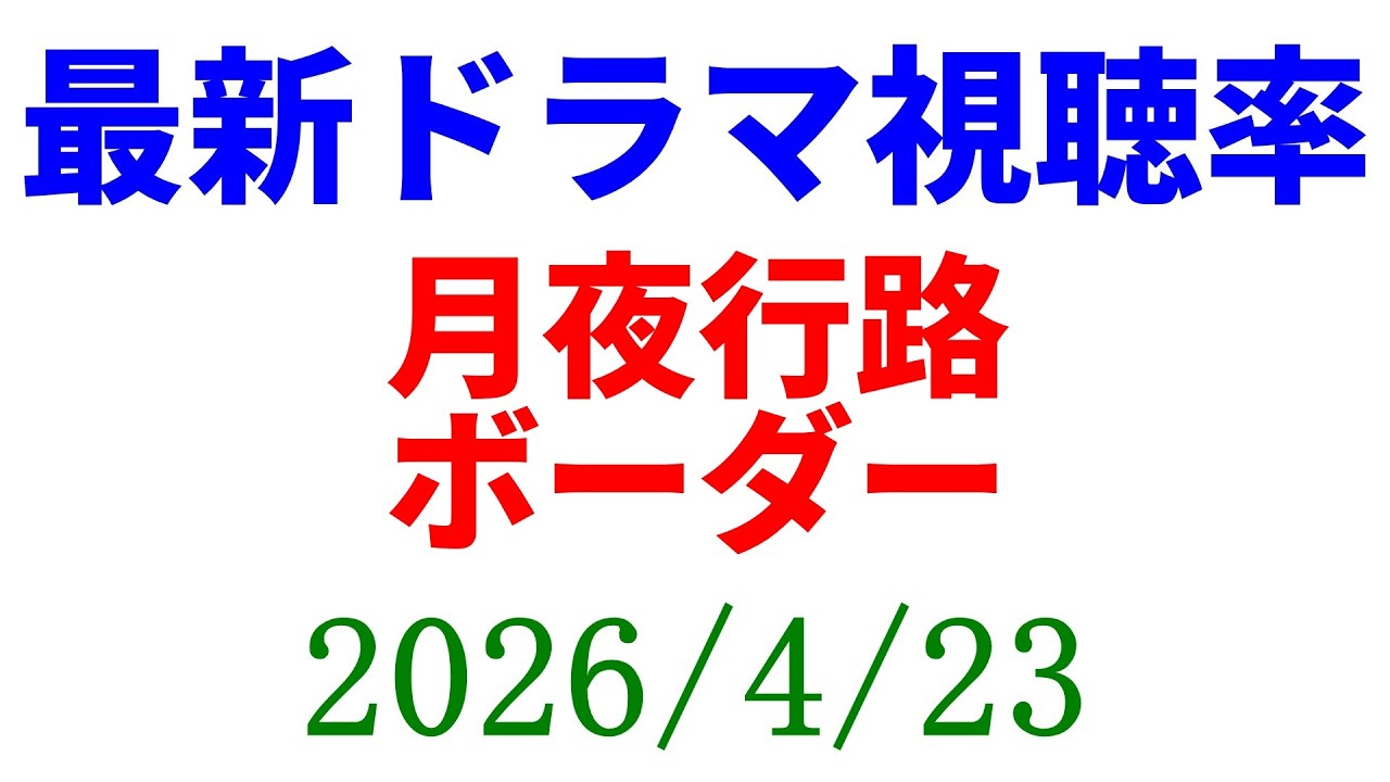 Share Facebook Twitter Pinterest LinkedIn ボーダー 高視聴率 月夜行路!視聴率速報☆2026年4月23日 ### ☆Amazon欲しいものリスト https://www.amazon.jp/hz/wishlist/ls/3MTQPTNTTWFUH?ref_=wl_share <ツイッター> https://twitter.com/KkReview このチャンネルのメンバーになって特典にアクセスしてください: https://www.youtube.com/channel/UC8I3iWxXV7Zqa5PpAeAlcFA/join dramaTVドラマテレビドラマドラマドラマ視聴率レビュー感想考察視聴率