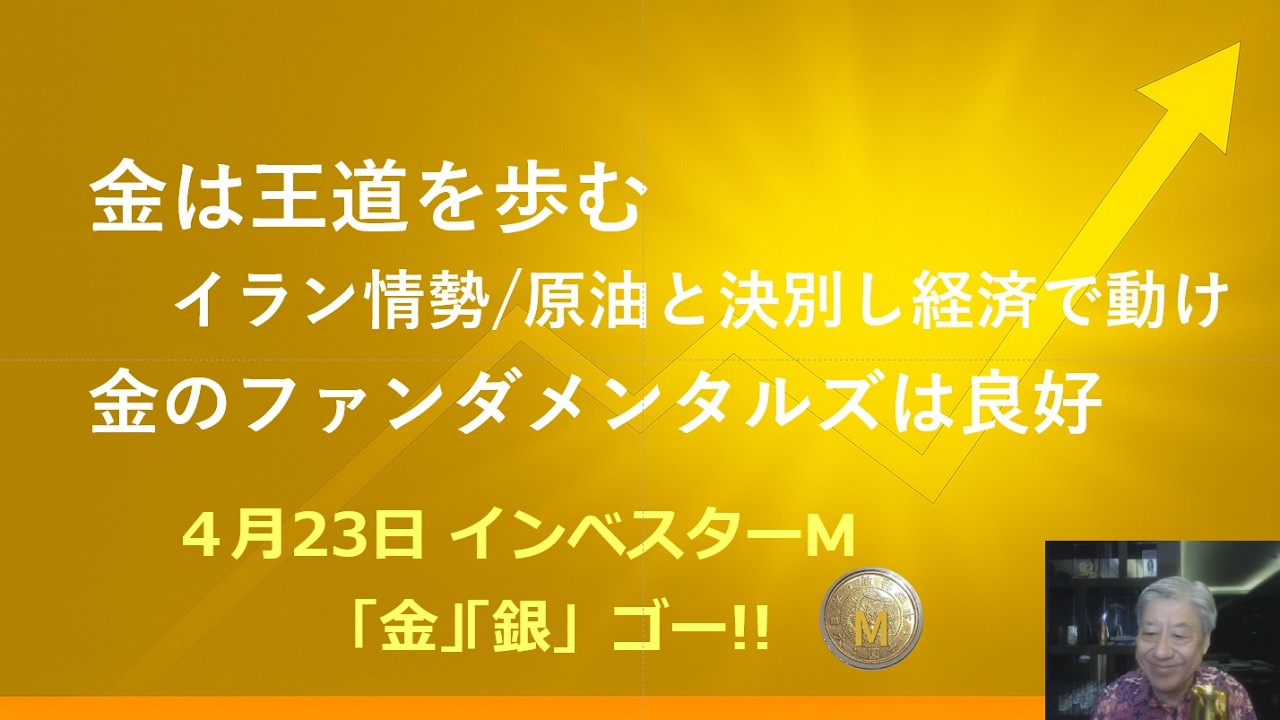 4月23日インベスターM「金」「銀」ゴー!! @金価格 @銀価格 @金は王道を歩む @イラン情勢/原油と決別し経済で動け @金のファンダメンタルズは良好