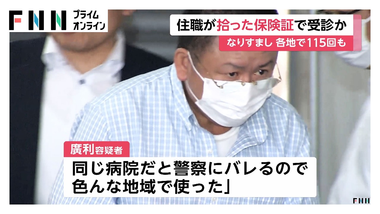 廣利容疑者は、「保険証がなく、拾った保険証を使った。同じ病院だと警察にバレるので、いろんな地域で使った」と容疑を認めているということです。