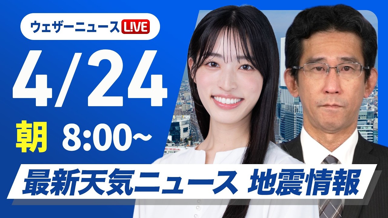 【ライブ】最新天気ニュース・地震情報 2026年4月24日(金) 広い範囲で日差しが戻り天気回復/ウェザーニュースLiVEサンシャイン・松本真央/山口剛央〉北海道・三陸沖後発地震注意情報発表