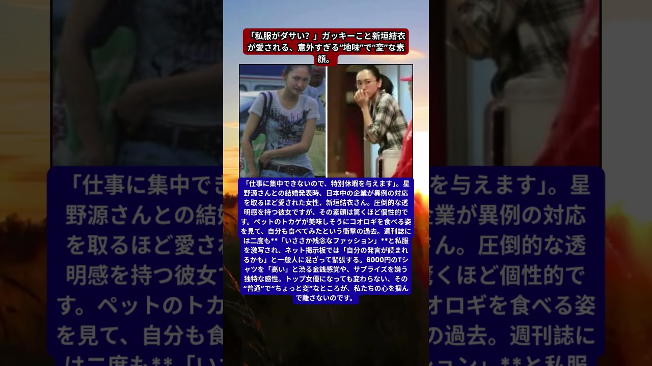日本中が「ガッキーロス」に震えた新垣結衣の結婚。なぜ彼女は、老若男女問わずここまで特別視されるのか?身長が高すぎて他校から恐れられた中学時代、ペットのトカゲと同じ餌を口にした好奇心、そして週刊誌に「残念」と評された私服姿。2ちゃんねるの書き込みに一喜一憂し、6000円の服をケチる金銭感覚…。トップスターになっても失われない「普通」の感覚と、時折見せる「天然」な魅力。日本中を虜にする新垣結衣の、愛さずにはいられない素顔をまとめました。