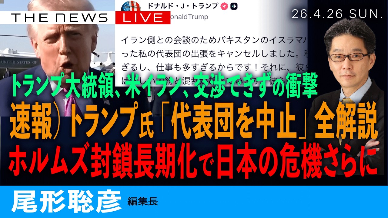 速報)トランプ大統領、代表団派遣をキャンセル/イランとの亀裂、あらわに (尾形聡彦)【4/26(日) 02:35~ ライブ】