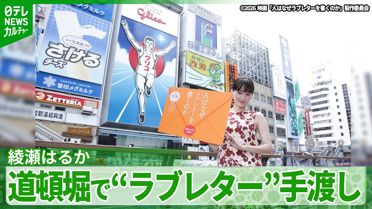 俳優の綾瀬はるかさん(41)が24日、主演映画のイベントで大阪の道頓堀に登場。映画のタイトル『人はなぜラブレターを書くのか』にちなみ、集まった方々に“ラブレター”を手渡しました。
