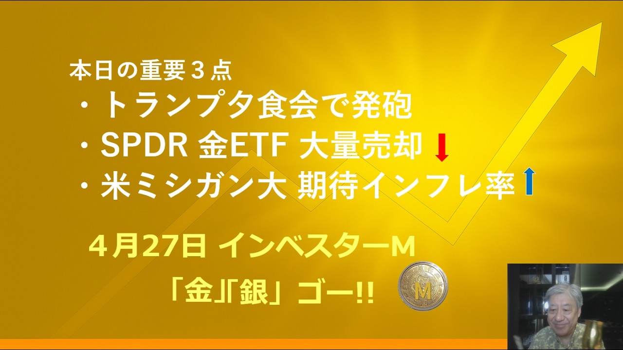 4月27日 #金価格 #銀価格 #トランプ夕食会で発砲 #SPDR金ETF大量売却↓ #ミシガン大 期待インフレ率↑ #インベスターM「金」「銀」ゴー!!