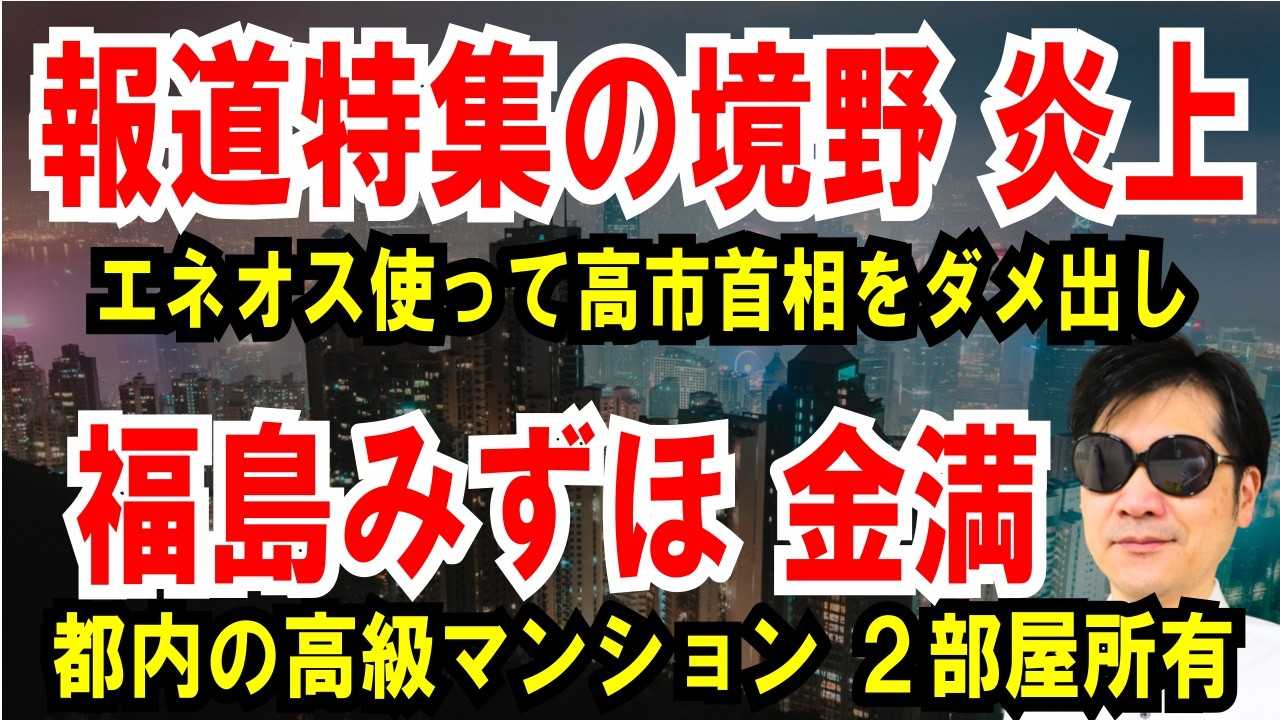 【報道特集の境野氏】ENEOS使って高市首相をダメ出し炎上【福島みずほ 金満】都内の高級マンション、2部屋所有ほか