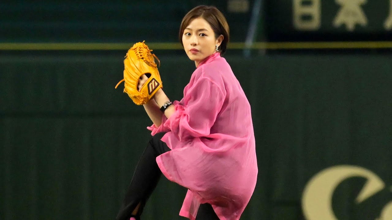 ■石原さとみ、今年は三浦大輔投手の2段投法で始球式/サントリードリームマッチ2018