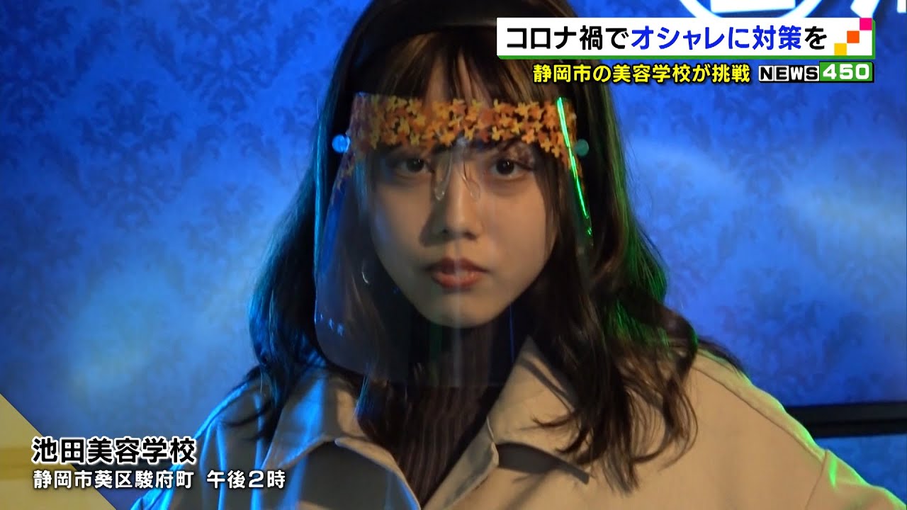 コロナ禍の中でも明るくなってもらいたいと、飾り付けたフェイスシールドでオシャレを楽しむファッションショーが静岡市の美容学校で開かれました。