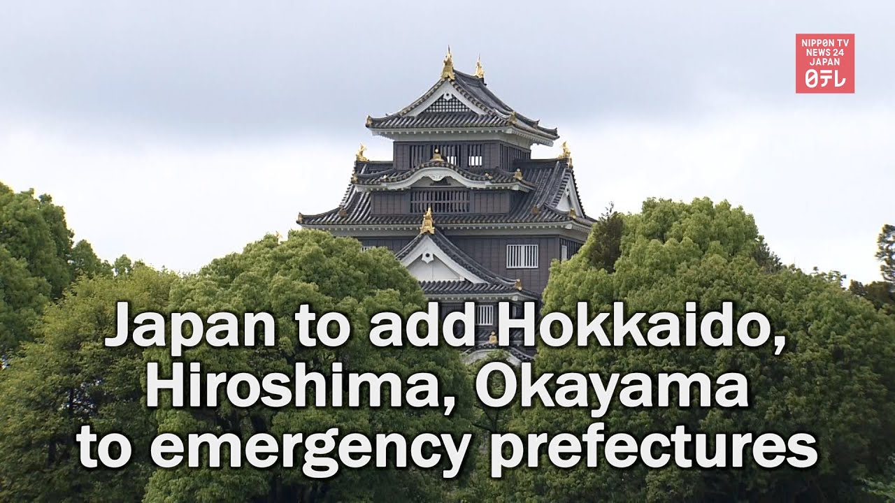 The Japanese government decides to add Hokkaido, Hiroshima and Okayama to prefectures covered under the country’s third state of emergency over the coronavirus.
