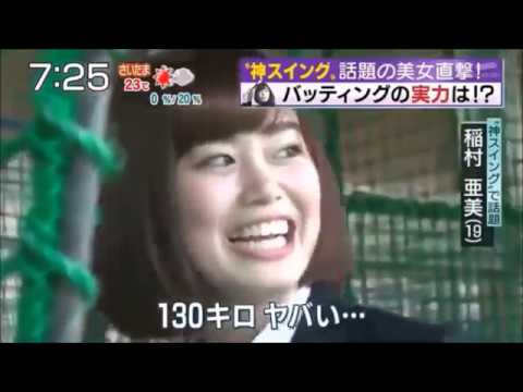 稲村亜美ちゃんの初々しい動画~♪スーツでバッティングセンターでの全力スイングが萌える~♪