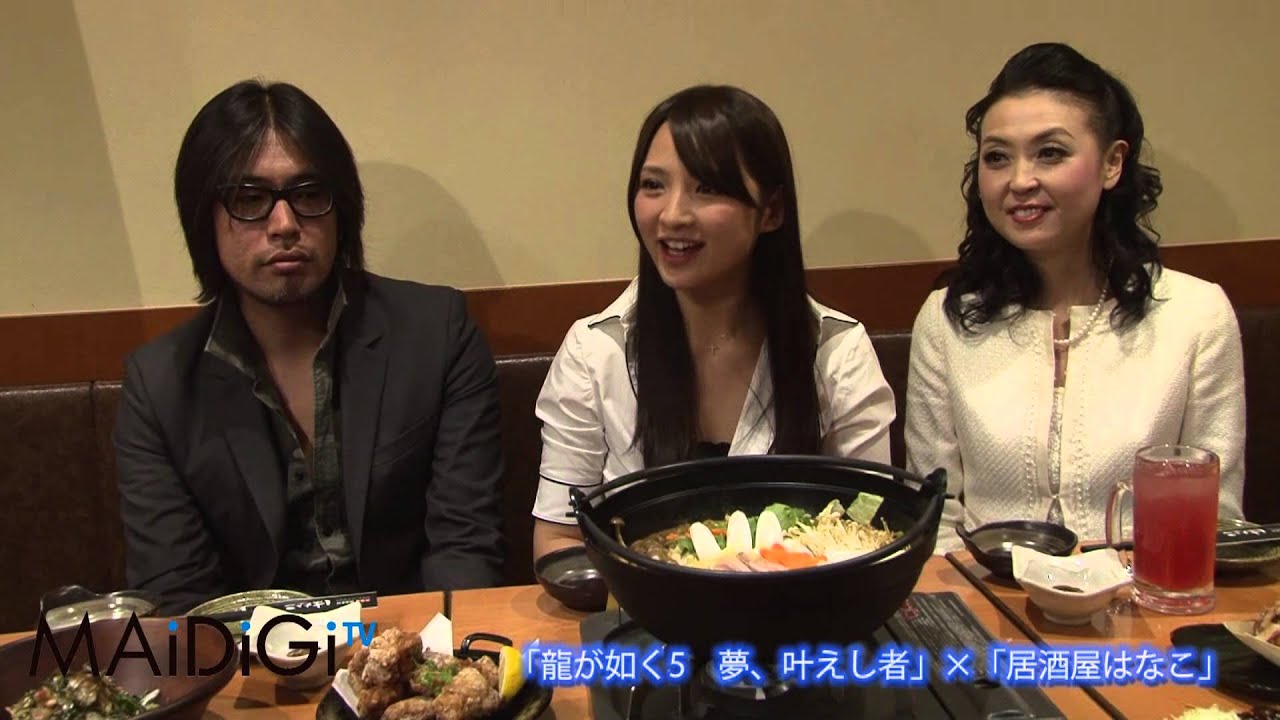 このほか発表会では、全国の同居酒屋30店舗でメニューに「龍が如く5宴会コース」を設定することが発表され、ゲームに登場する5大都市にちなんだ大阪の大粒タコ焼きや、札幌の若鶏のザンギなど、ご当地メニューを含む7品の試食会が行われた。同ゲームの横山昌義プロデューサーは「各土地の文化を伝える時、食文化が重要になる。ゲームなら主人公が食べることができるけれど、はなこに来れば、5都市を舌で全部味わえる。いいコラボができたと思う」と語った。愛知県出身の鈴木さんは名古屋のみそカツ串を食べ、「おいしい! 地元の味がしてます」と太鼓判を押していた。