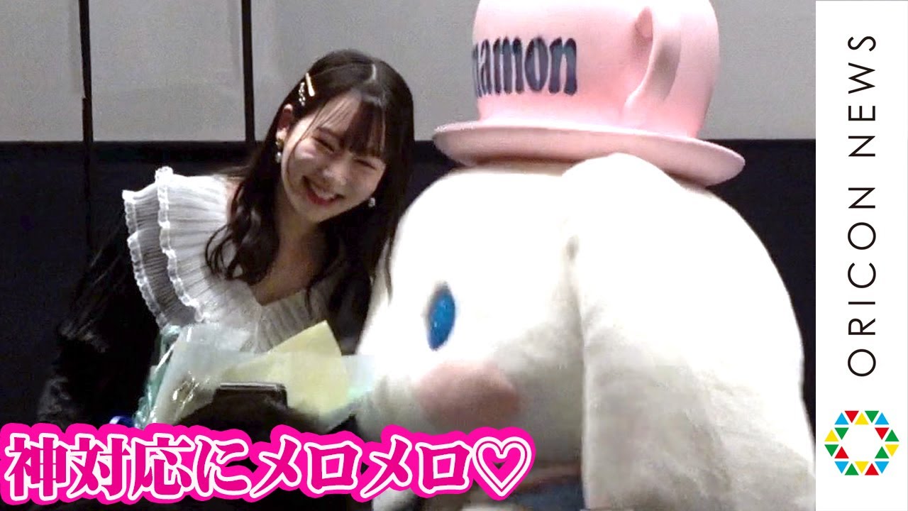 しながわ観光大使を務めるシナモロールも登場。越智も小南も「めっちゃめっちゃうれしい! かわいい!」と大興奮で、シナモロールはお祝いの花束を手渡した。作品を一足早く見たというシナモロールは「2人のやり取りにキュンキュンしちゃった」と感想を明かしていた。