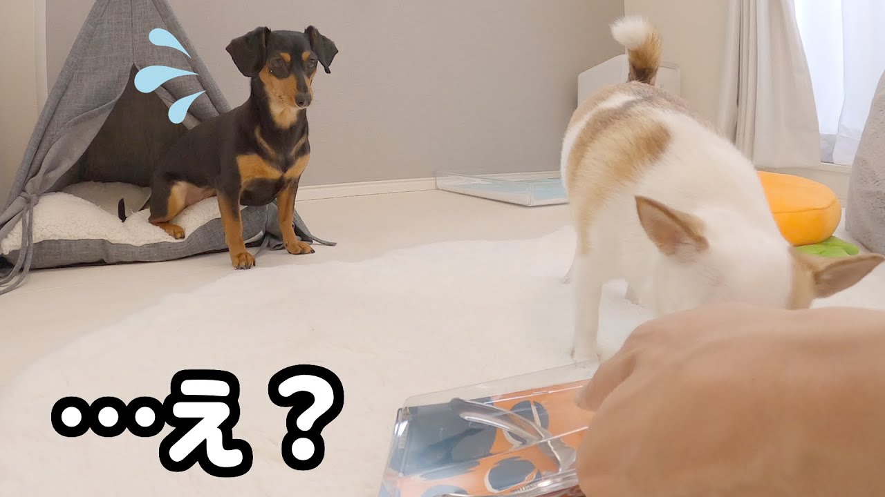アマゾンから届いたブツを必死で守るチワックスののんちゃんですが、それあなたが見ただけで逃げ出す爪切りですよ…?🤣