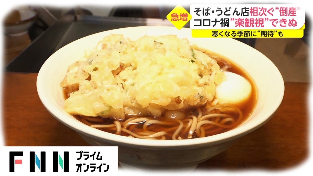 東京商工リサーチによると、2020年9月までのそば・うどん店の倒産は15件で、前年の同時期8件に対し、2倍増と急増している。