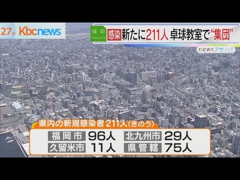 新規感染者211人の内訳は、福岡市96人、北九州市29人、久留米市11人、県管轄分75人です。また、高齢の男女2人の死亡も発表されました。