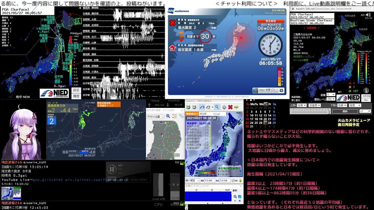 【1080p HD・超低遅延】地震監視・24時間LIVE みるきくリアルタイム24
