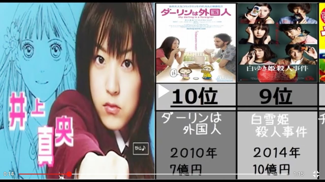 井上真央さんの出演した映画の興行収入ランキングです( •̤ᴗ•̤ )チャンネル むぎちゃん比較動画♪ https://bit.ly/2Zj403Xチャンネル登録お願いします(*´∀`*)#井上真央 #井上真央ドラマ #井上真央CM #井上真央映画 #ランキング #井上真央花より男子 楽曲 魔王魂 井上真央井上真央CM井上真央ドラマ井上真央ランキング井上真央恋愛ドラマ井上真央映画井上真央松本潤井上真央歌井上真央牧野つくし井上真央現在井上真央生い立ち井上真央結婚井上真央花より男子映画ランキング興行収入ランキング