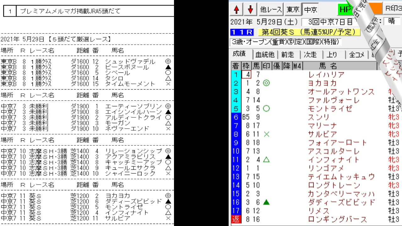 競馬予想メールマガジン配信結果 2021年5月29日 5頭BOX 4戦3勝