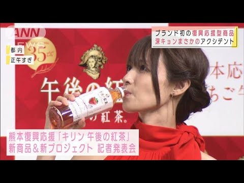 2016年の地震で被害を受けた熊本県を応援する「キリン 午後の紅茶」の新商品「いちご午後ティー」の記者発表会に出席しました。