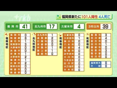福岡県は新型コロナウイルスについて3日、再陽性1人を除いて、新たに101人の陽性と4人の死亡を発表しました。