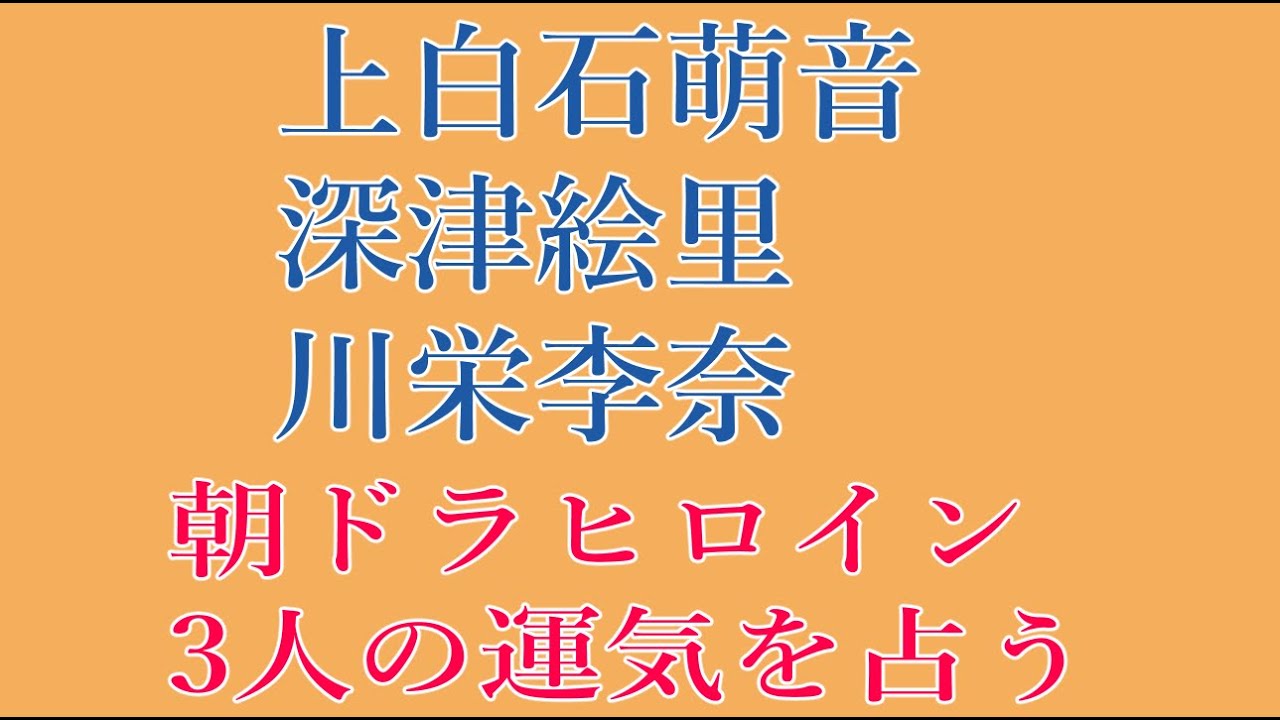 ■ 上白石萌音 深津絵里 川栄李奈 朝ドラヒロイン3人の運気を占う