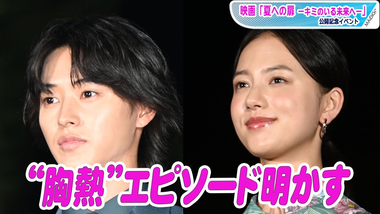 俳優の山崎賢人さんが6月6日、東京都内で行われた主演映画「夏への扉 -キミのいる未来へ-」(三木孝浩監督、6月25日公開)の公開記念イベントに共演の清原果耶さん、藤木直人さん、夏菜さん、高梨臨さん、三木監督出席した。