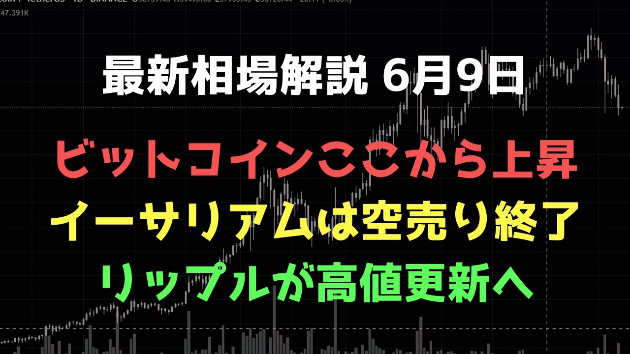 ビットコイン、イーサリアム、リップルの値動きの解説をします。中途半端な位置で下げ止まってダマシの可能性が残りますが、自分は底打ちと判断しました。BTCドミナンスが上がりそうなので、イーサではなくビットコインをロング。リップルは日足で第5波の下落を終え、長い調整期間を終えて、対BTCの下落トレンドのトレンドラインもしれっと上抜けてます。