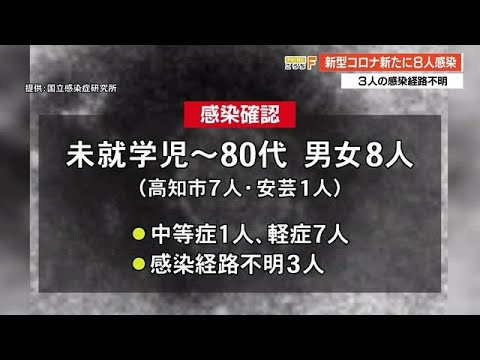 高知県で新たに8人が新型コロナに感染していることがわかりました。30代の女性が中等症です。
