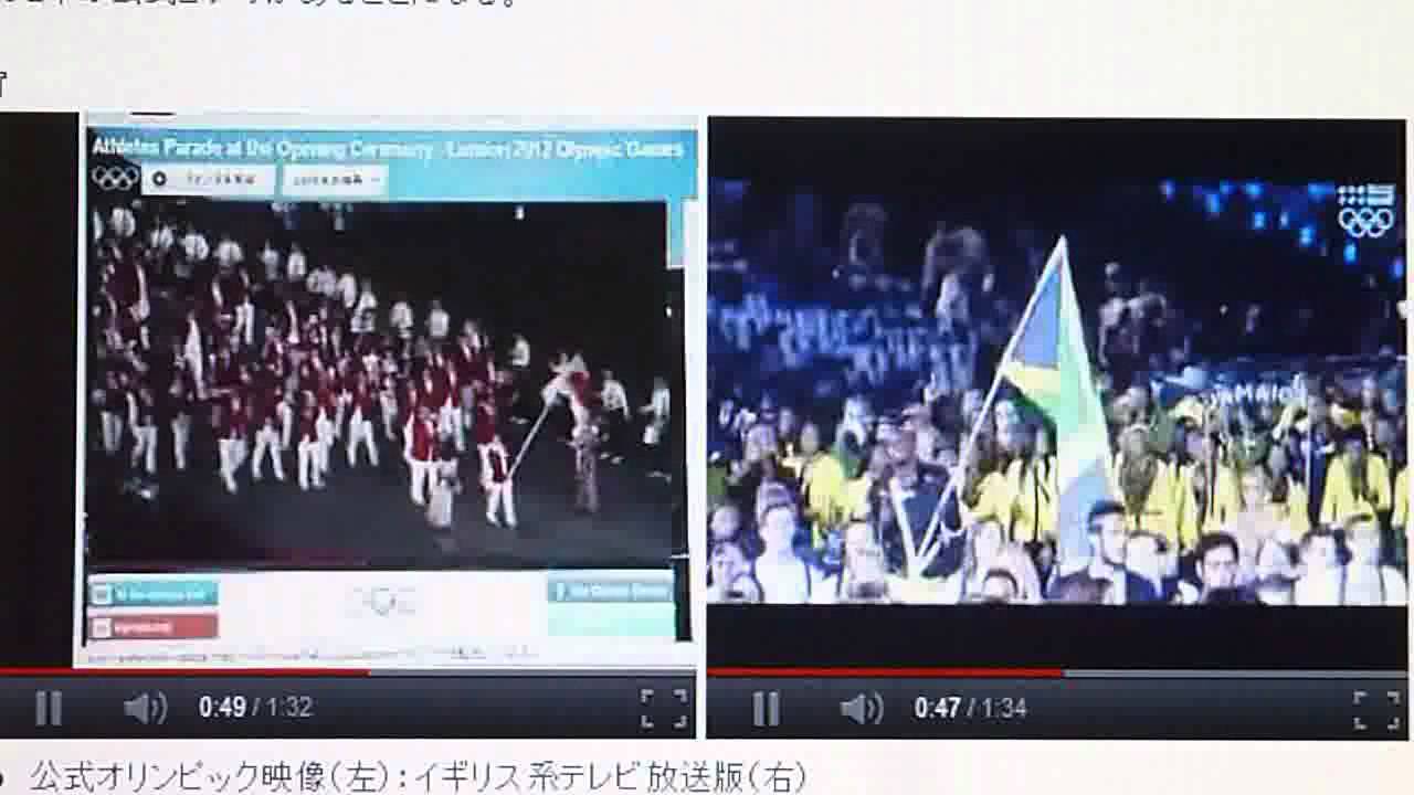 ロンドンオリンピック開会式選手団行進:左は「公式チャンネル」のもの。右は少なくともカナダ、オーストラリアに公式配給されたテレビ生放送。つまり公式映像は2本あり、その一本において日本選手団の部分に限って特別な意図的差し替えが行われ、「日本外し」が実行されています。あなたの地域はどうでしたか。データをとっています。地域とどちらが放送されたかコメントください。 Ceremony:TVlondonOlympicOlympicsopeningscreenオリンピック五輪開会式東京 2020 オリンピック東京 2021 オリンピック東京オリンピック