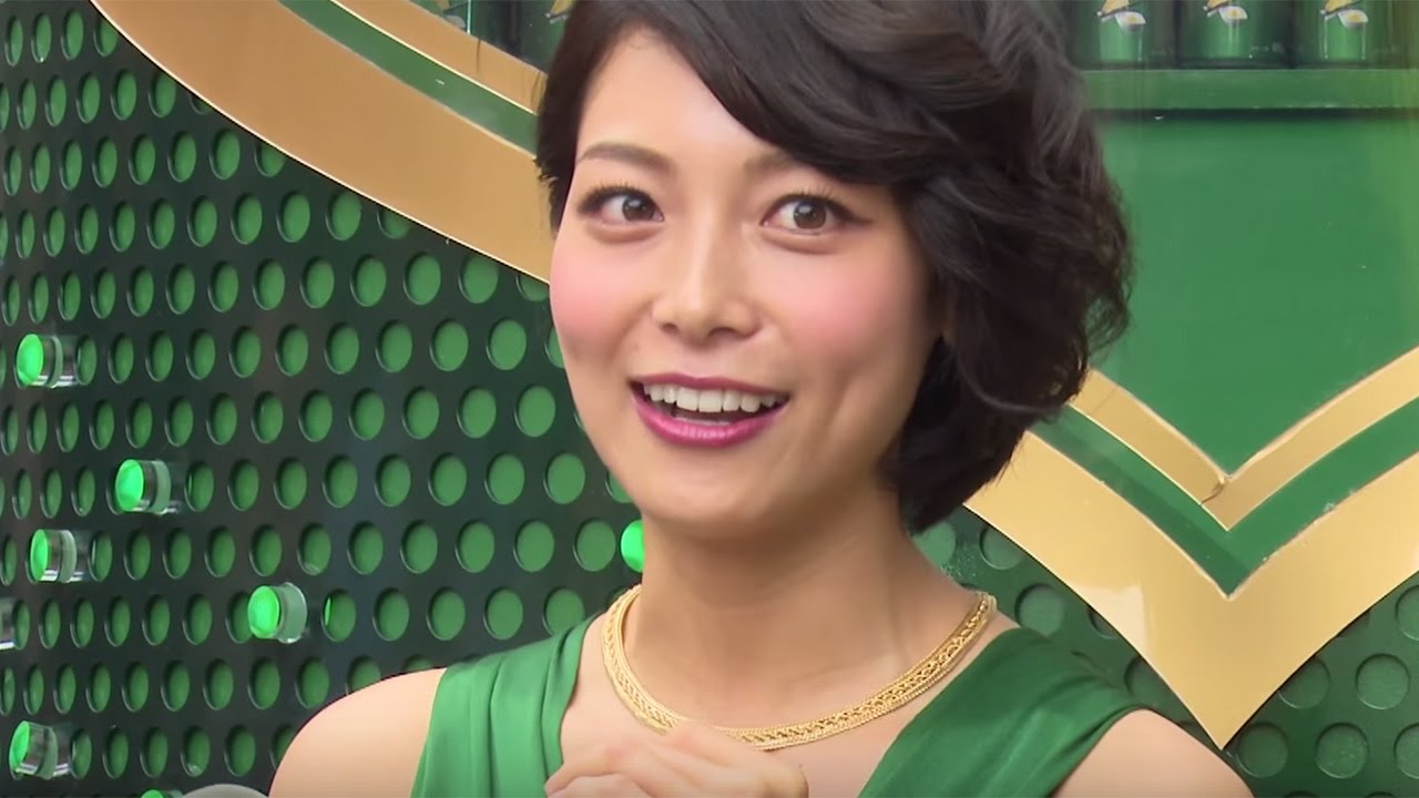 Actress Saki Aibu appeared in a vivid green long dress at the PR event “Kraft 100% Parmesan Grated Cheese” of Morinaga Mild Industry. The comedy duo “Okazu club” also attended this event.