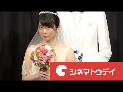 志田未来と竜星涼が12日、都内で行われた映画『泣き虫ピエロの結婚式』完成披露試写会に純白のウエディングドレスとタキシード姿で登場し劇中の結婚式シーンを再現。「結婚しました!」と晴れやかな笑顔を見せた。イベントには新木優子、御法川修監督も出席した。