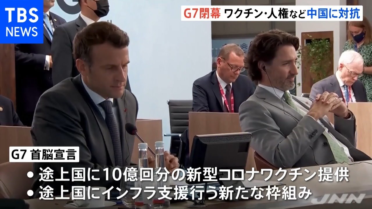 首脳宣言では途上国に対してG7諸国で 10億回分の新型コロナワクチンを提供するほか、コロナ禍からの経済回復の過程で途上国に対し様々なインフラ支援を行う新たな枠組みについても記されました。透明性の重視など民主主義の価値観を押し出し、中国の「一帯一路」に対抗するものとなっています。また、新疆ウイグル自治区や香港において自由や人権を尊重するよう呼びかけ、南シナ海・東シナ海については一方的な現状変更の試みに強く反対するとけん制しました。