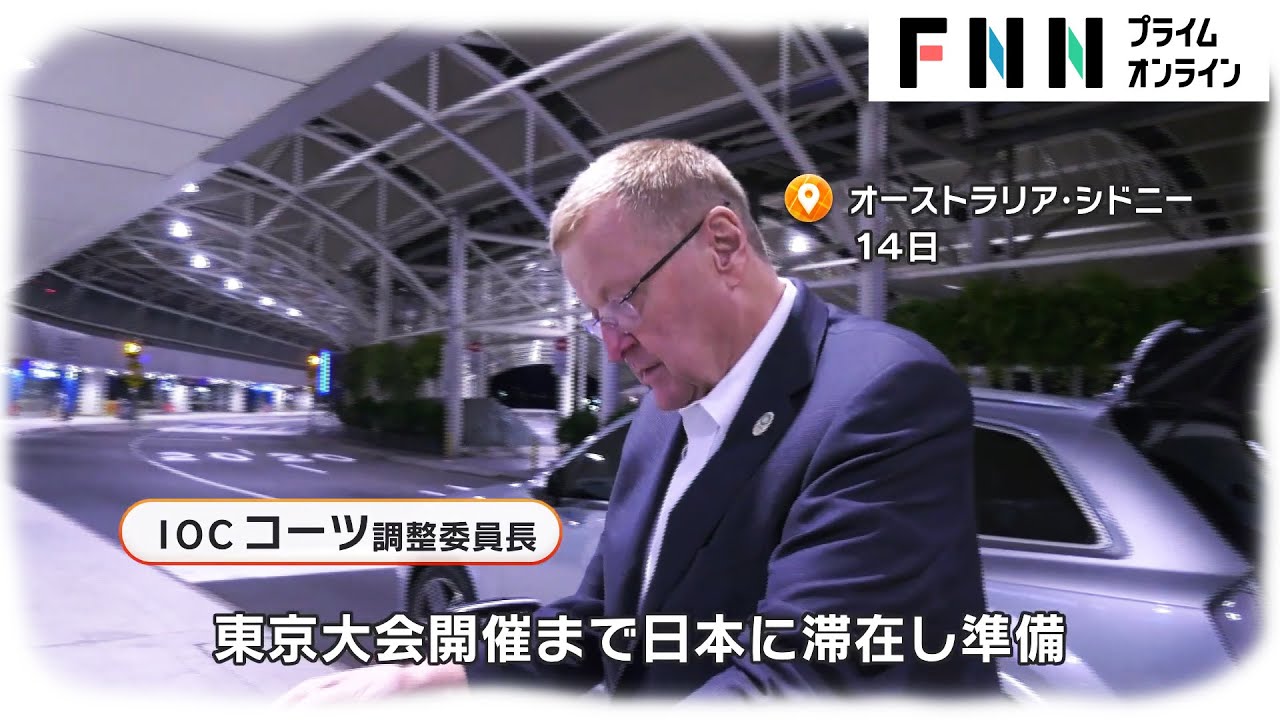 コーツ委員長は大会開催まで日本に滞在し準備にあたるが、新型コロナウイルス対策の規定により、空港で検査を受けたあとは、すぐに都内のホテルに向かい、3日間は隔離され、その後の11日間も行動が規制される。