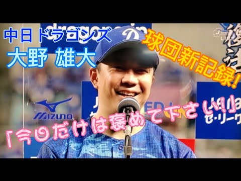 2020.10.22 中日ドラゴンズvs横浜DeNAベイスターズ試合後のヒーローインタビューの様子です。 今日の投球で大野雄大選手はシーズン10完投・6完封、5年振りの2桁勝利、そしてシーズン連続イニング無失点の球団記録を更新しました! 今シーズンは1人だけ昭和の大エースのような異次元の投球が続いてますね!!#中日ドラゴンズ #大野雄大 #球団新記録 大野雄大