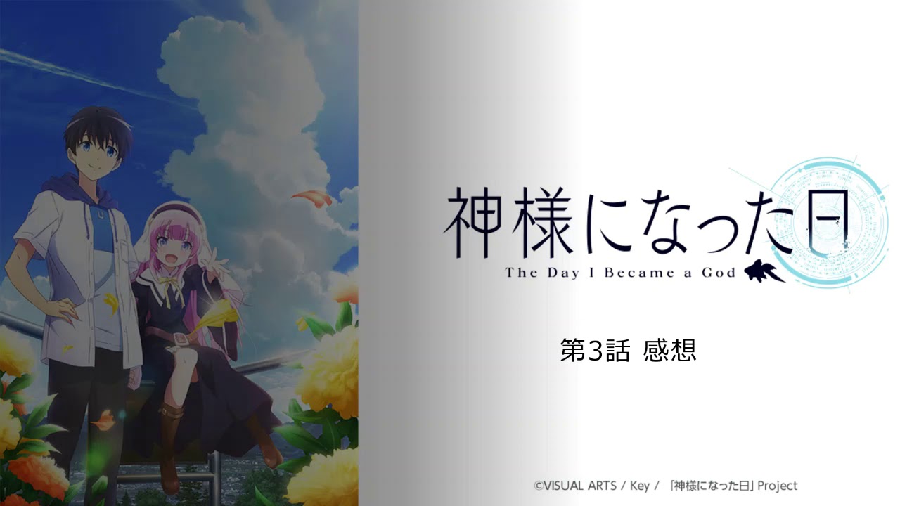 Share Facebook Twitter Pinterest LinkedIn 「神様になった日」の第3話を観ました。 その感想です。 ▼コモリの欲しいものリスト ▼Twitter ▼ブログ(コモリヤスハルの日記帳) 神様になった日
