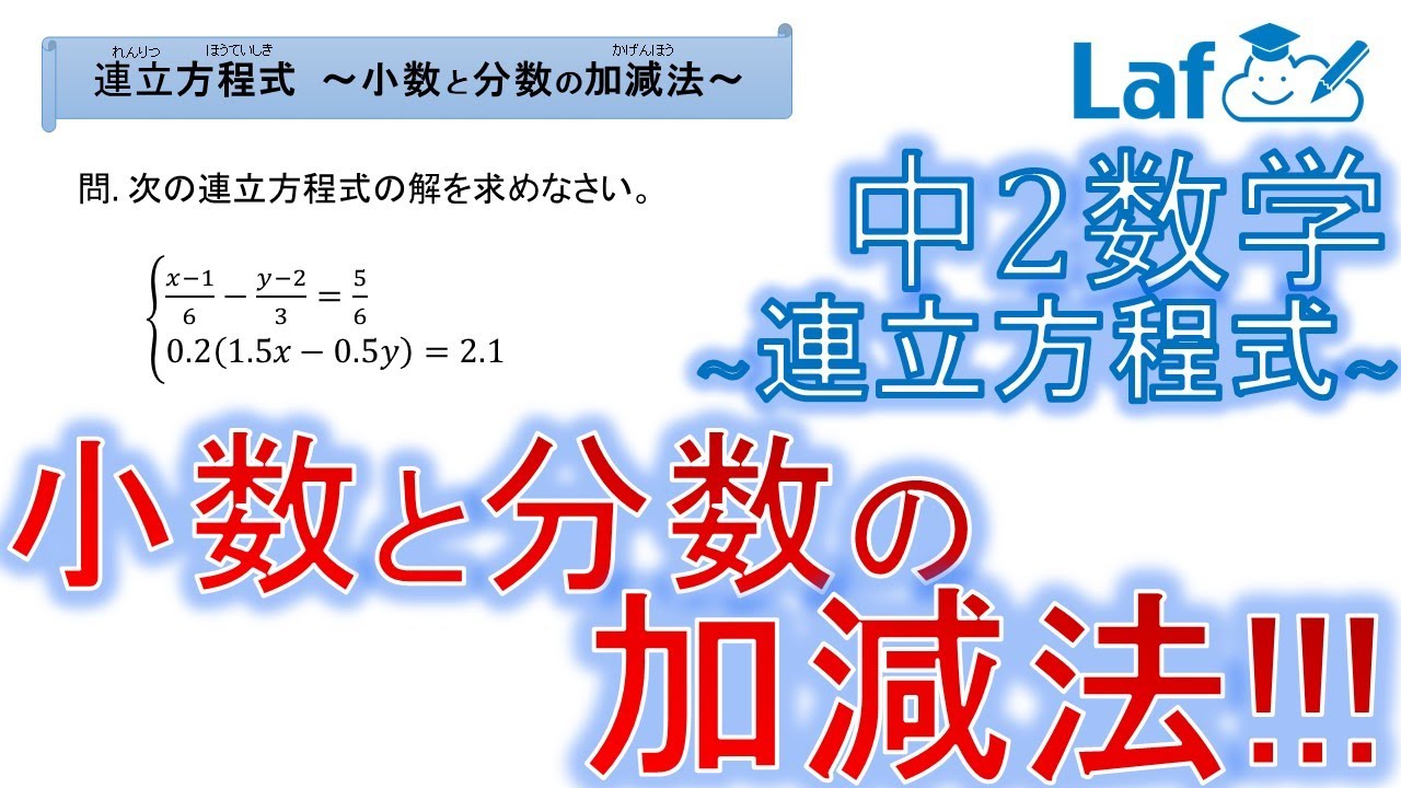 LafLaf先生中2中学生先生を消す方程式入試問題分数加減法勉強塾学習塾小数数学発展連立方程式