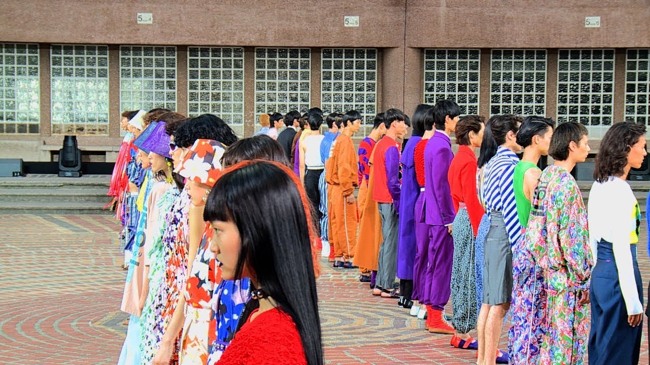 歌手のラファウンダ(Lafawndah)が歌い、窓から吊られたダンサーたちがパフォーマンスを見せるというオープニングは圧巻。「ハイパーケンゾー」をスローガンとしたカラフルなメンズ&ウィメンズウェアは、2人のミューズへのオマージュだという。ミューズである坂本龍一(Ryuichi Sakamoto)と山口小夜子(Sayoko Yamaguchi)という意外な組み合わせについて、デザイナーの2人が語った。(c)Parimodes.tv