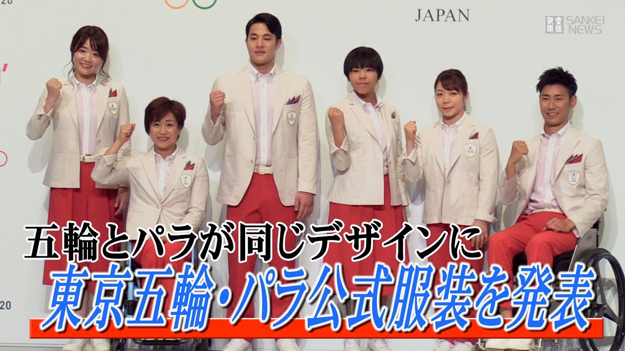 東京五輪・パラリンピックで日本選手団が開会式の入場行進で着用する公式服装が23日、発表され、白のジャケットと赤のパンツ、キュロットが披露された。結団式などの式典用となる紺のジャケットと白のパンツ、キュロットもお披露目された。