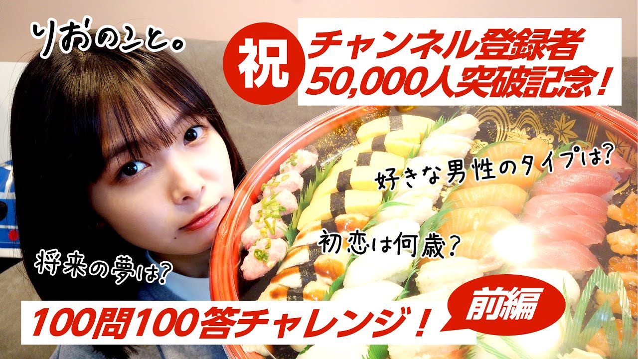 50,000人に合わせてお寿司を50貫食べながらチャレンジしております!
