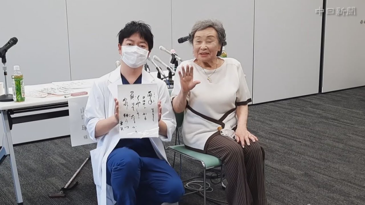 1月に新型コロナウイルスに感染し、入院生活を経て回復した大津市の伊東綾子さんが記者会見。趣味の気功や川柳も披露するなど、元気な姿を見せた。(森田真奈子撮影)