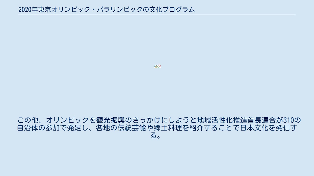 2020年東京オリンピック・パラリンピックの文化プログラム, by Wikipedia https://ja.wikipedia.org/wiki?curid=3222045 / CC BY SA 3.0