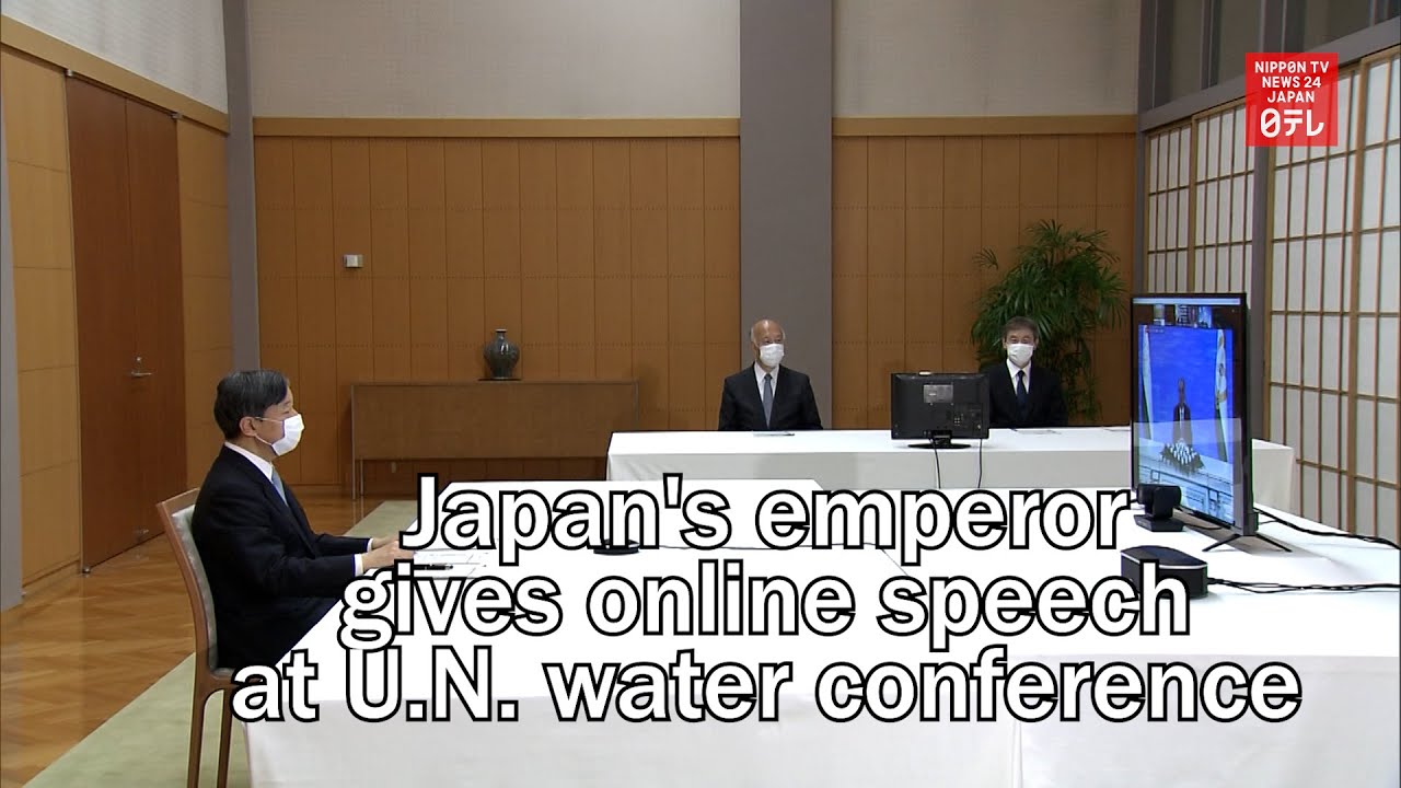 Japan’s Emperor Naruhito gives an online speech at the U.N. Special Thematic Session on Water and Disasters.