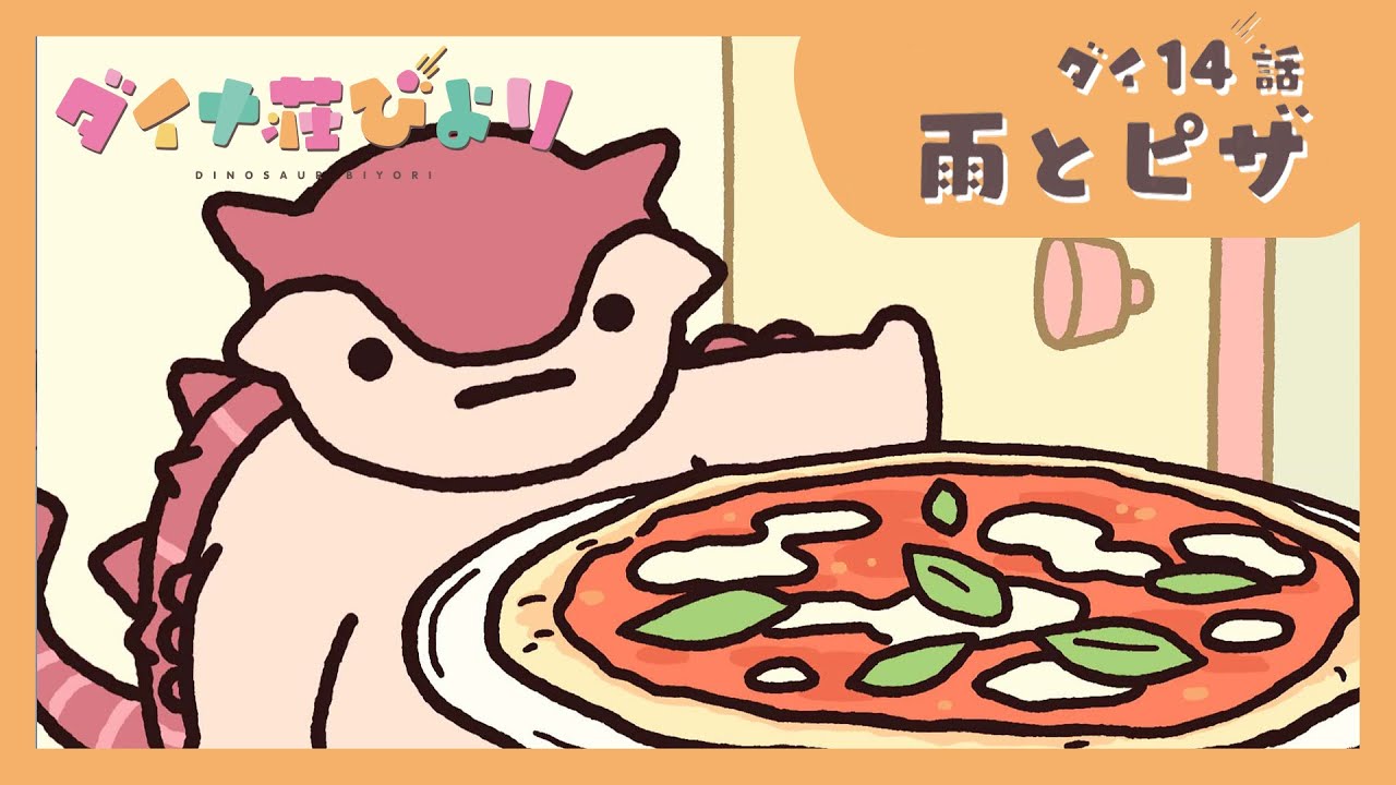 ピザを作るトリケラ。そういえば肉食恐竜って粉物料理食べられるんだっけ?