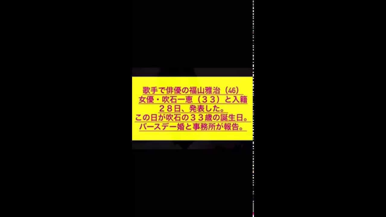 芸能速報シンガーソングライターの福山雅治(46)と女優の吹石一恵(33)が28日入籍と発表した。 2人は数年前から交際が噂されていた。 この日は吹石一恵の誕生日でバースデー婚となった。 J-pop (Musical Genre)Masaharu Fukuyama (Musical Artist)おめでとうガリレオシンガーソングライター吹石一恵福山雅治結婚芸能人速報速報