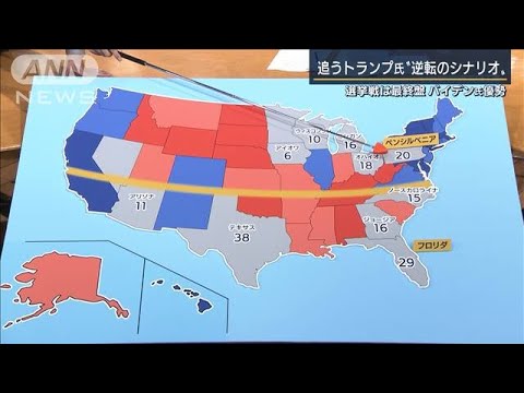 慶応義塾大学・中山俊宏教授:「フロリダはちょっとわからないところがあります。少し前はバイデン氏が比較的はっきりと優位を維持していましたが、選挙前になって近付きました。ここをバイデン氏が押さえれば、トランプ氏が再選する道筋が限りなく減っていくので見所です」